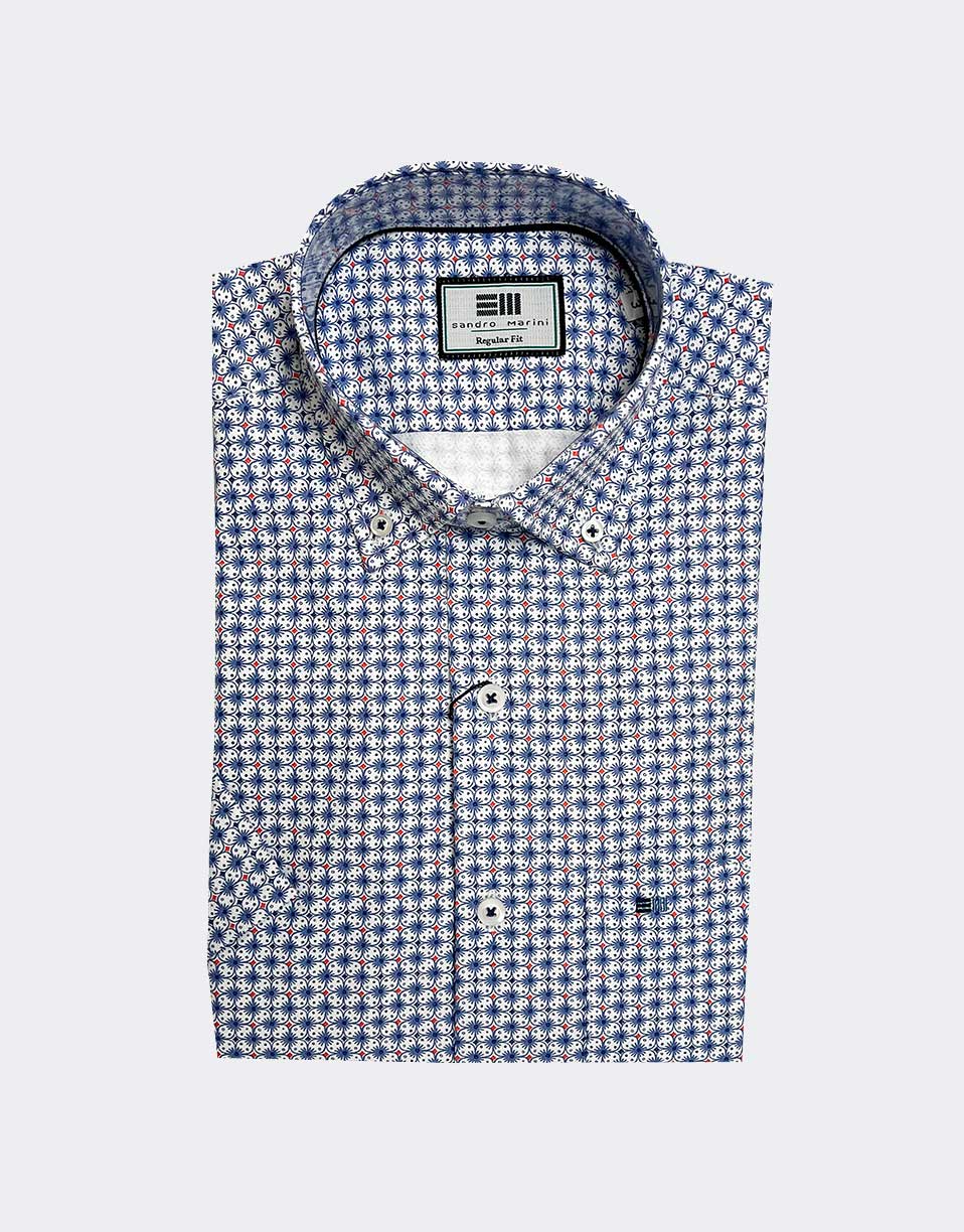 Camisa de hombre manga corta con estampado de flores geométricas