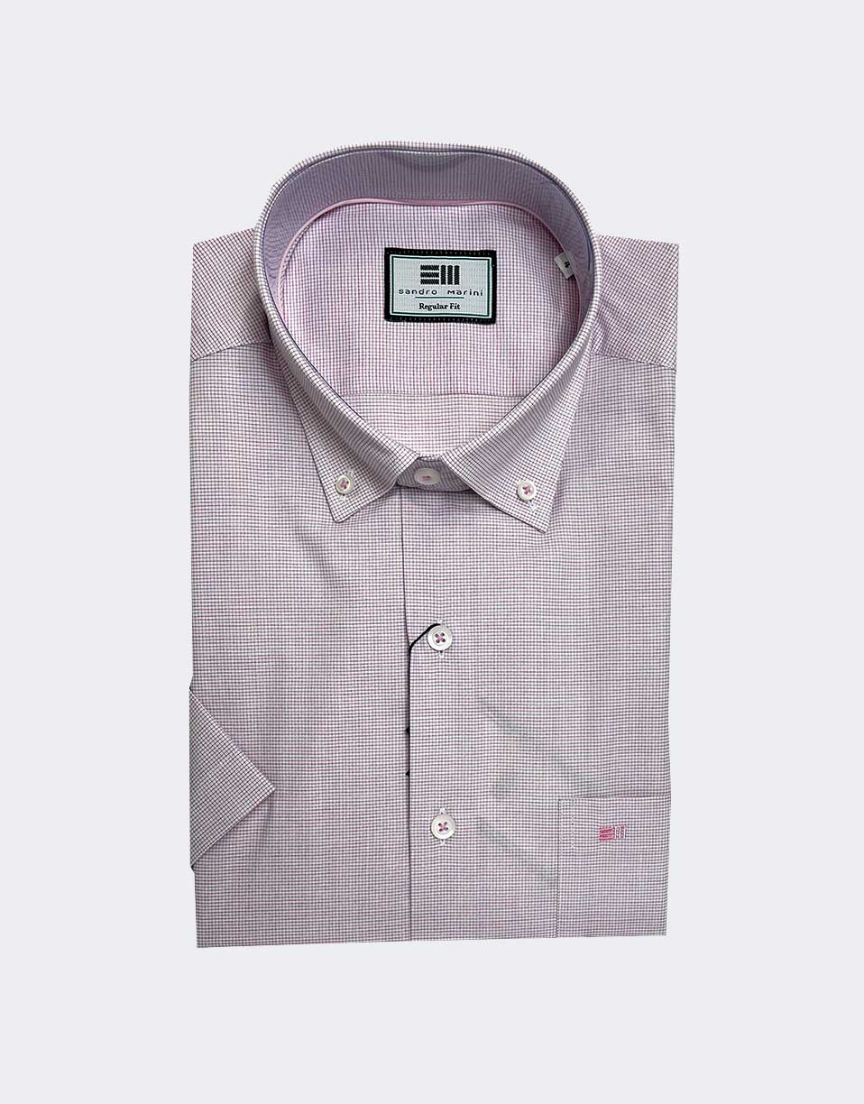 Camisa hombre de manga corta cuadro super pequeño en lila