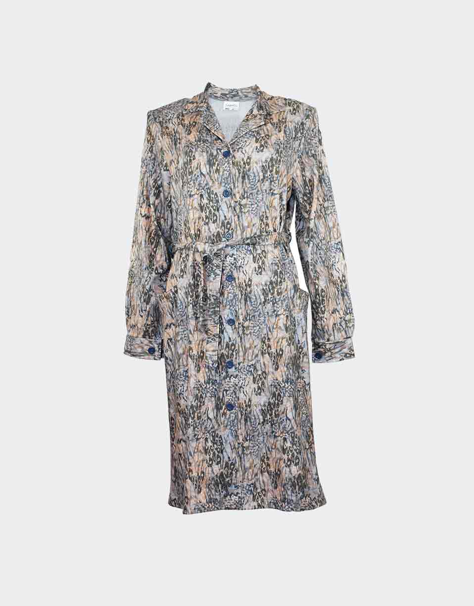 Bata de Mujer de Punto con Cuello Solapa, Bolsillos y Puños, Estampado Abstracto 'Animal Print' Acuarela