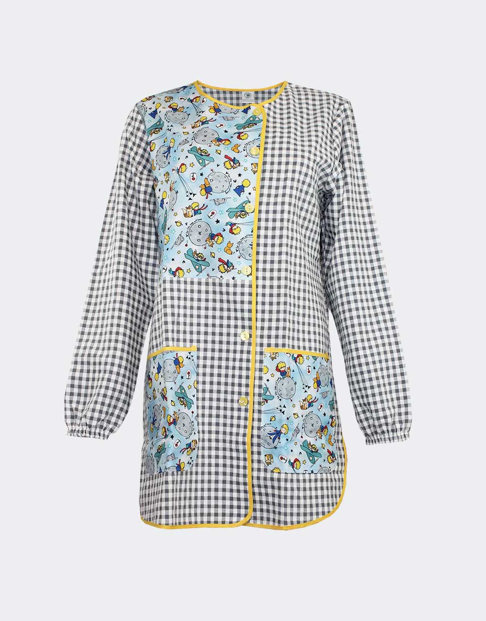 Bata mujer cuadros vichy gris y estampado ‘El Principito’