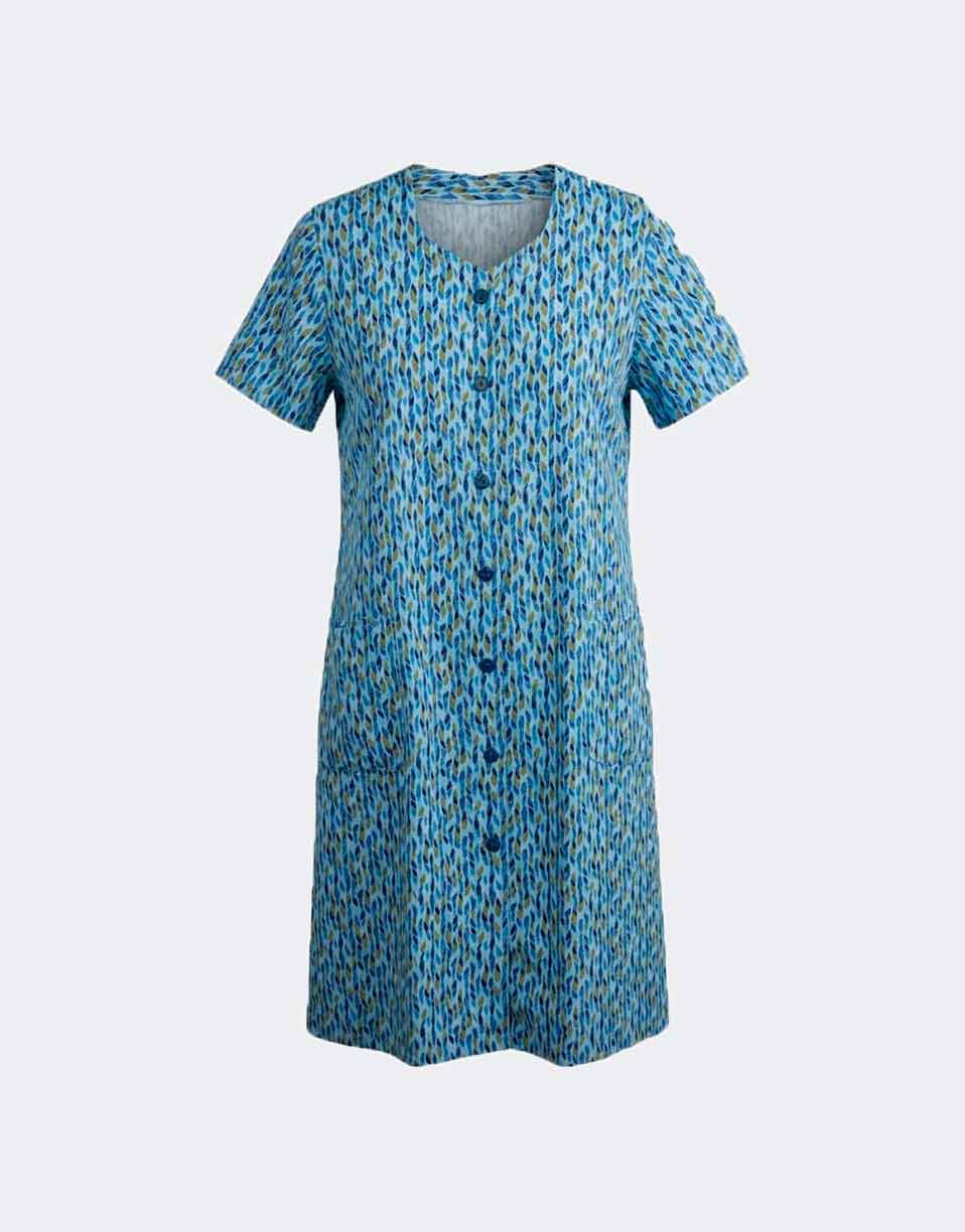 Bata de mujer manga corta en tejido bambula con estampado trenza azul