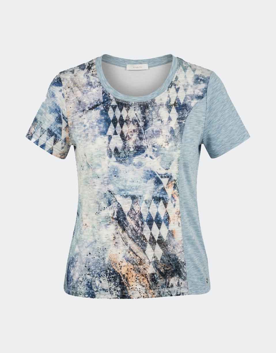 Camiseta de Mujer en Punto Fino Tricot con Estampado Abstracto en Tonos Azules Pastel