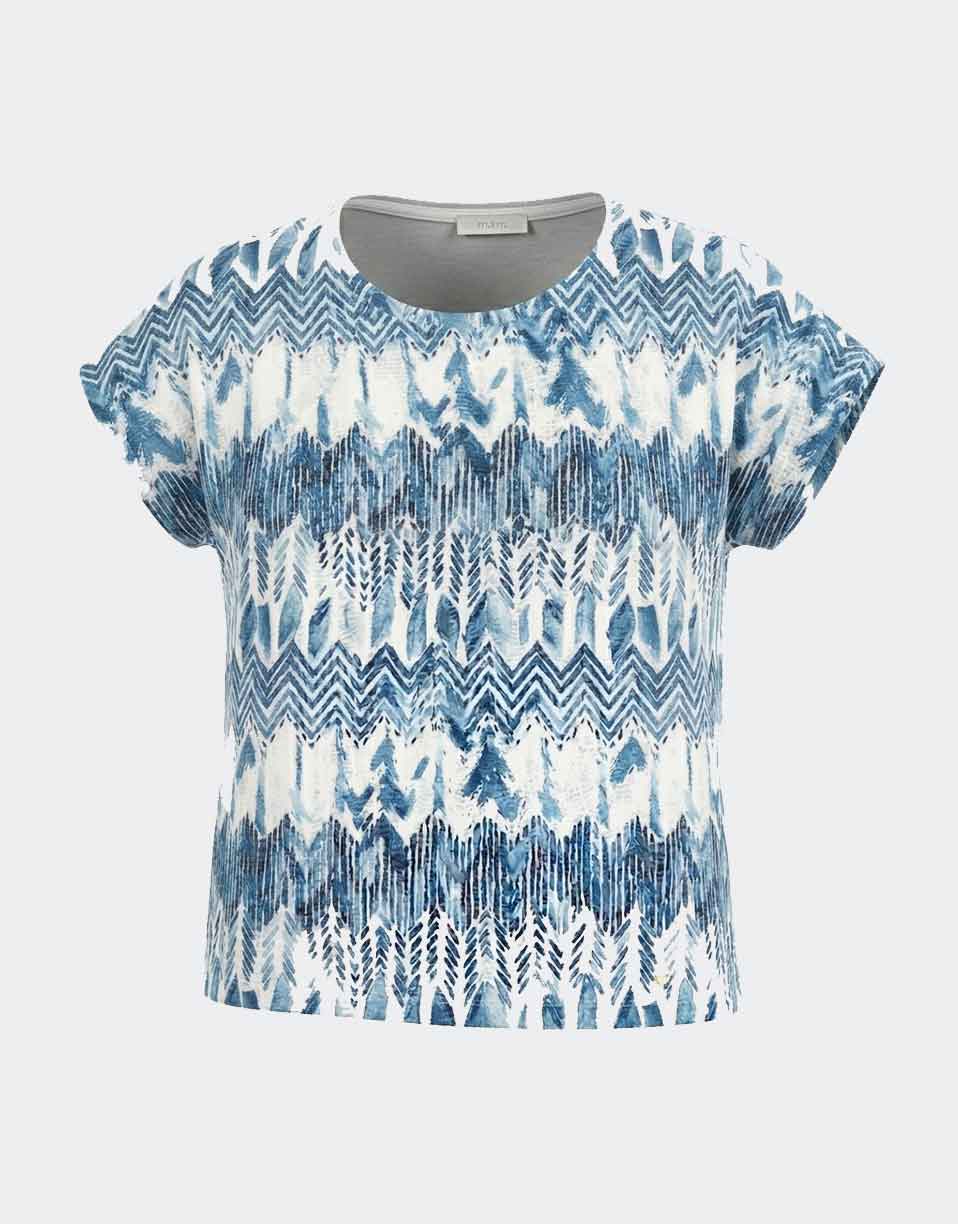 Camiseta de mujer punto manga caída cuello redondo estampado ‘zig-zag’ acuarela azul