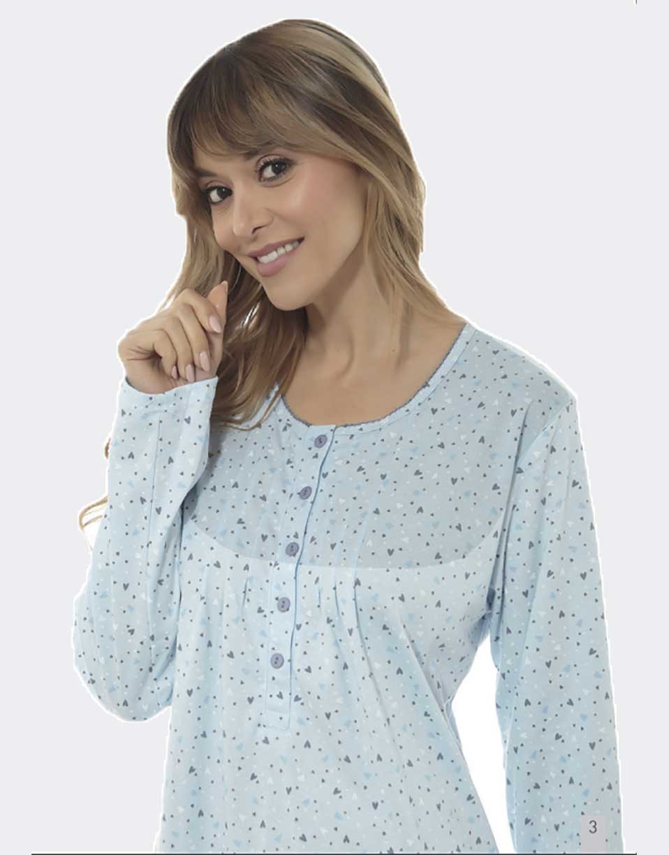 Camisón de Mujer en Punto Felpa con Tapeta de Botones y Canesú Estampado de Corazones