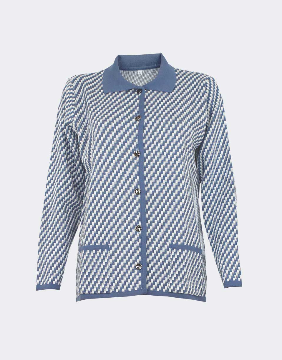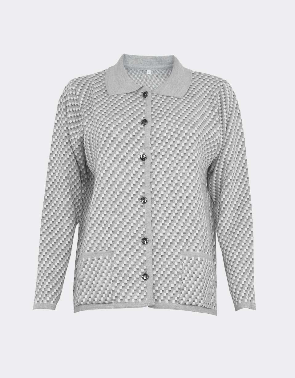 No dejes pasar esta chaqueta de punto con cuello y estampado de cuadros si buscas una prenda duradera y con estilo ideal para la temporada otoño-invierno. Explora más opciones como esta en nuestra sección de chaquetas para mujer y completa tu look con nuestras novedades.