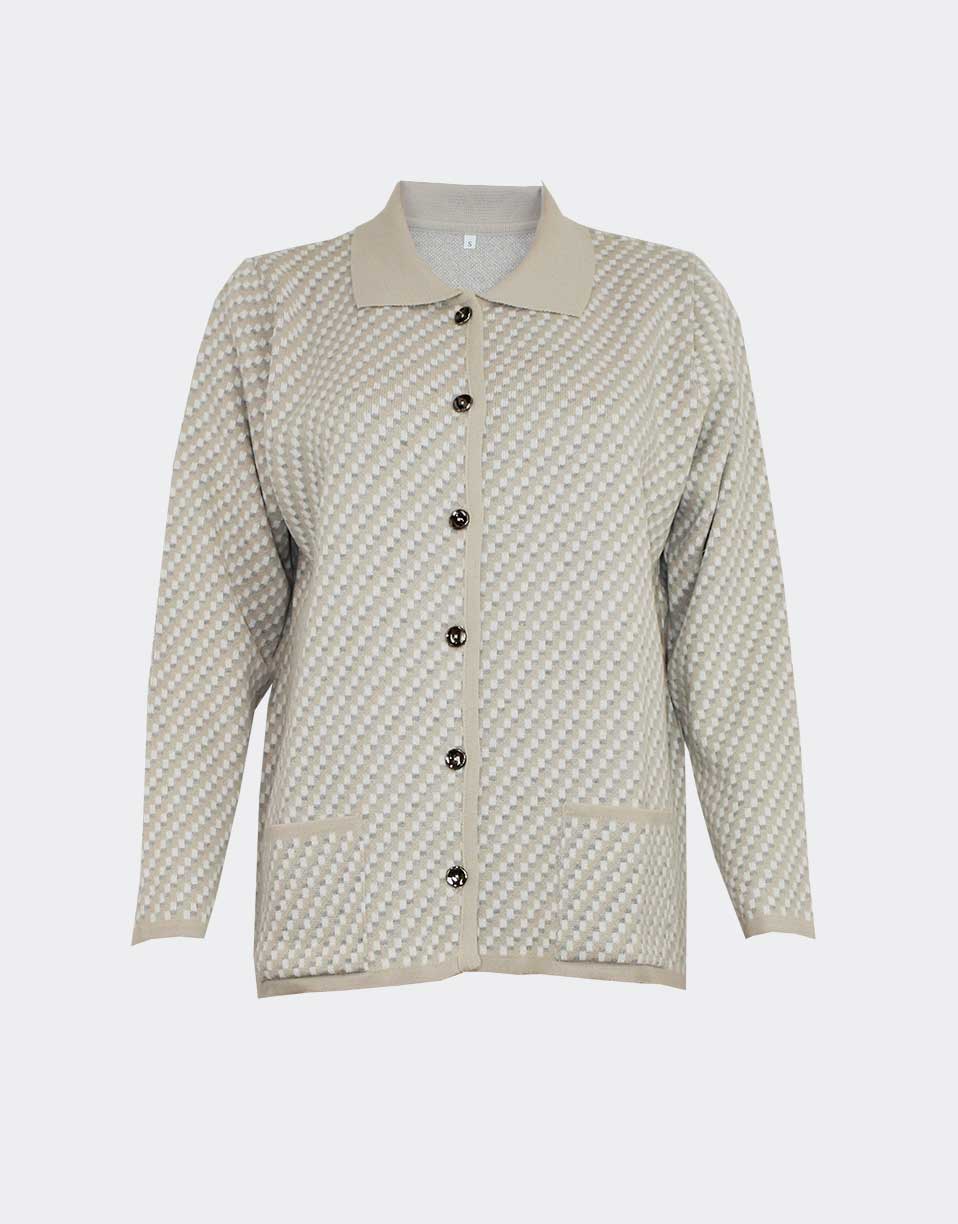 Chaqueta punto INVIERNO mujer con Cuello, Botones y Bolsillos, Estampado de Cuadritos