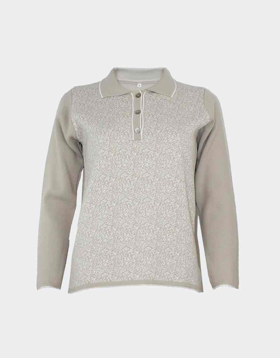 Este jersey de polo destaca por su cuello clásico con abertura de botones, que ofrece una apariencia cuidada y femenina.