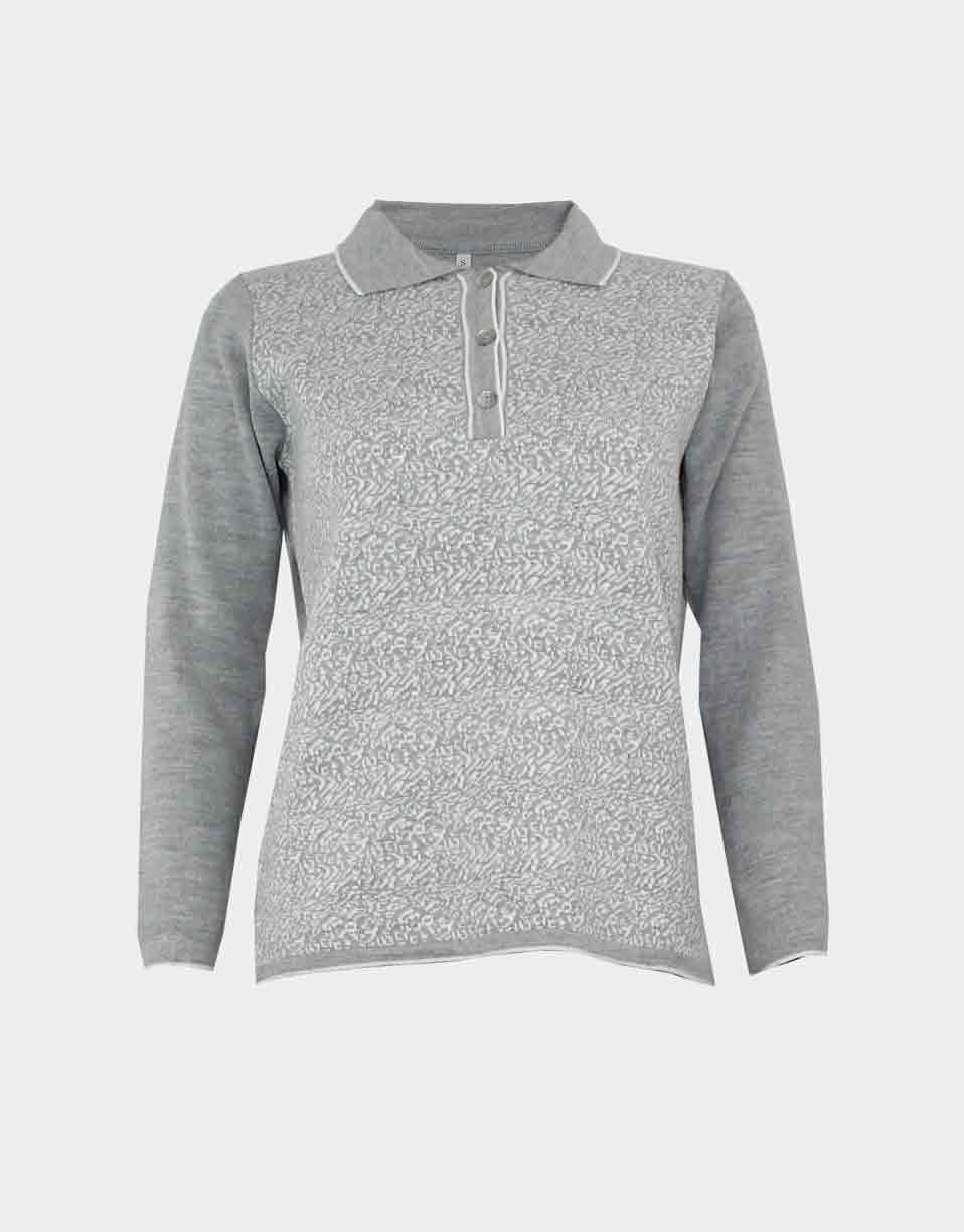 El jersey de polo mujer de punto con estampado abstracto fino es una prenda elegante, versátil y moderna.