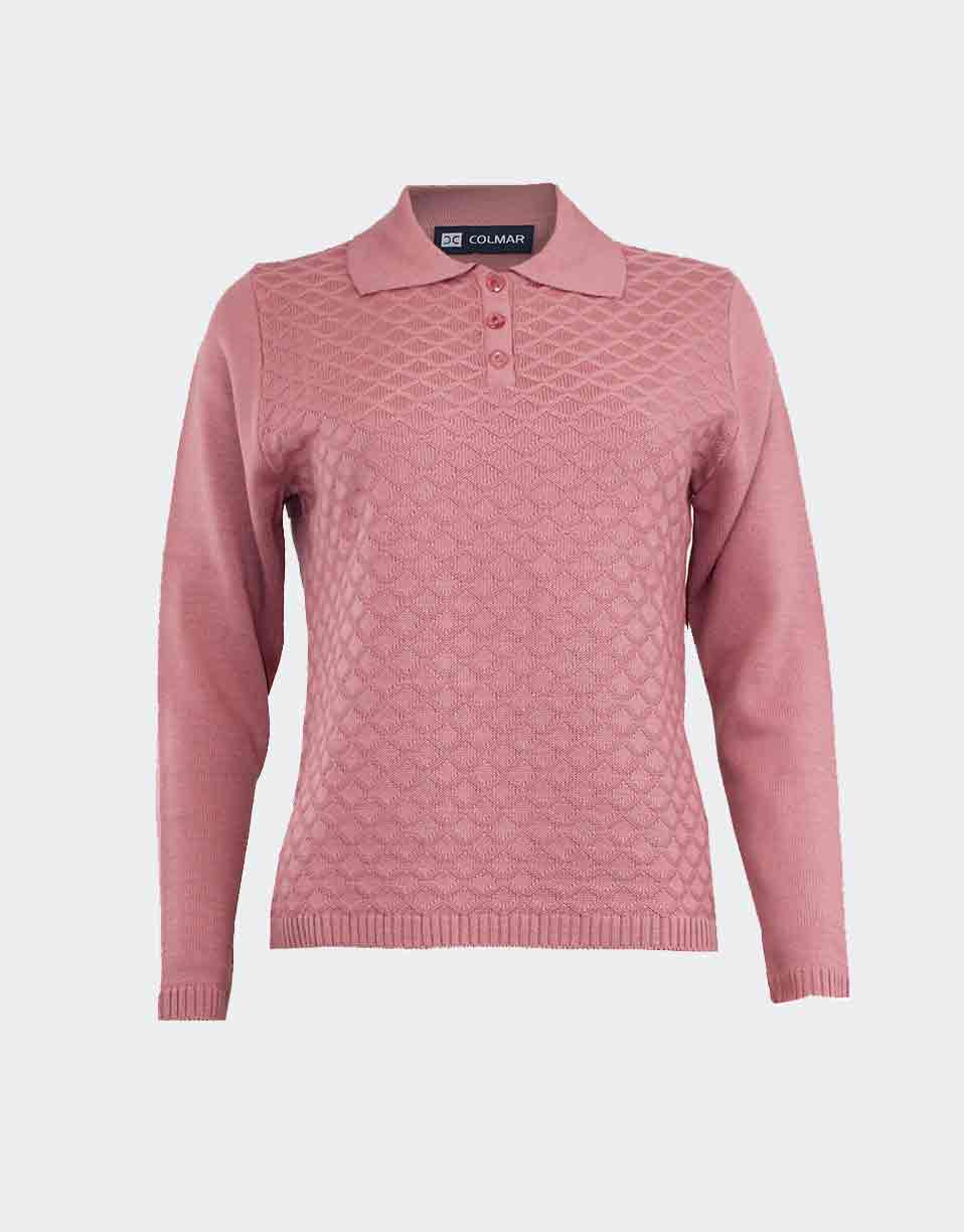 Jersey de Mujer Punto con Cuello Polo y Relieve de Rombos