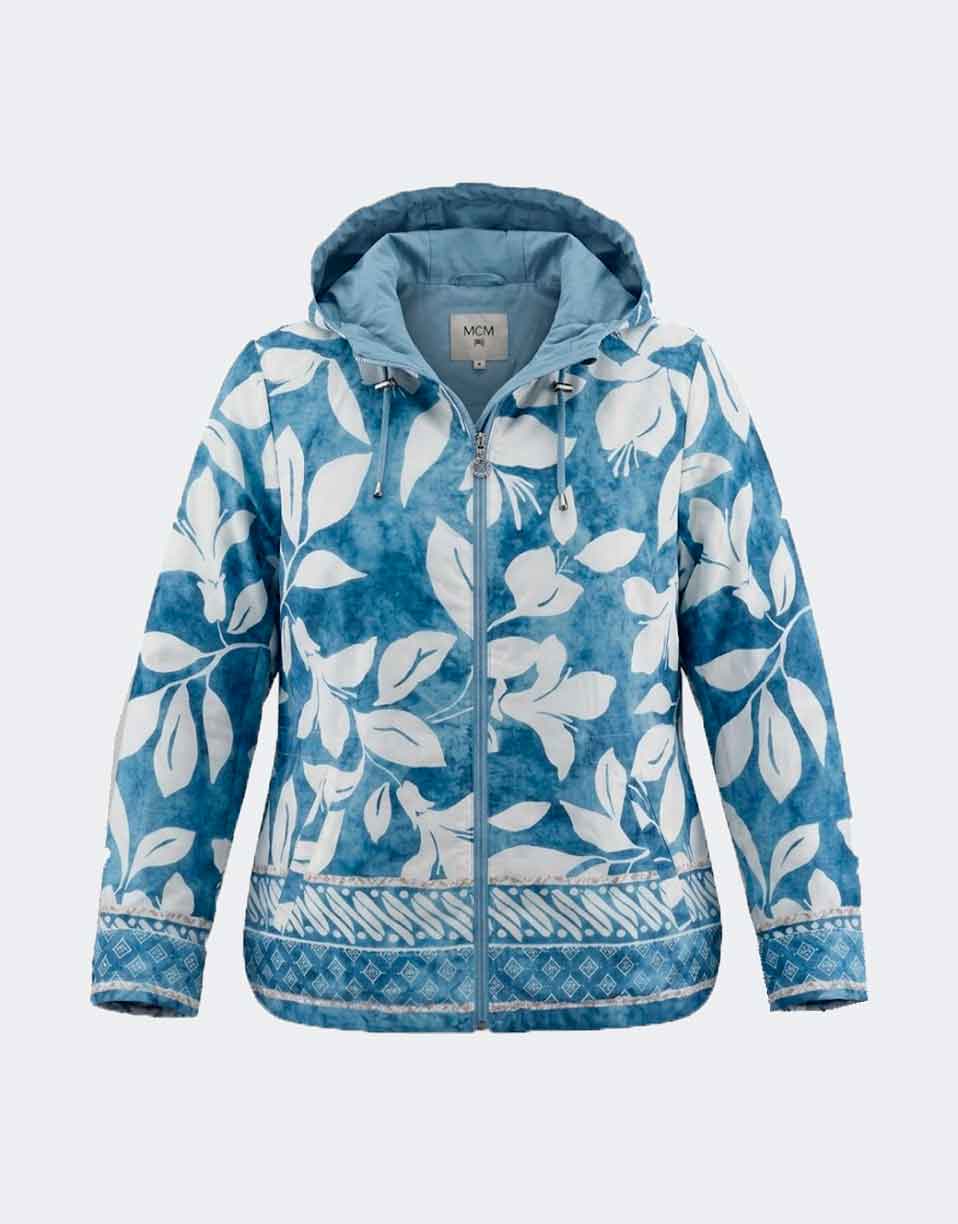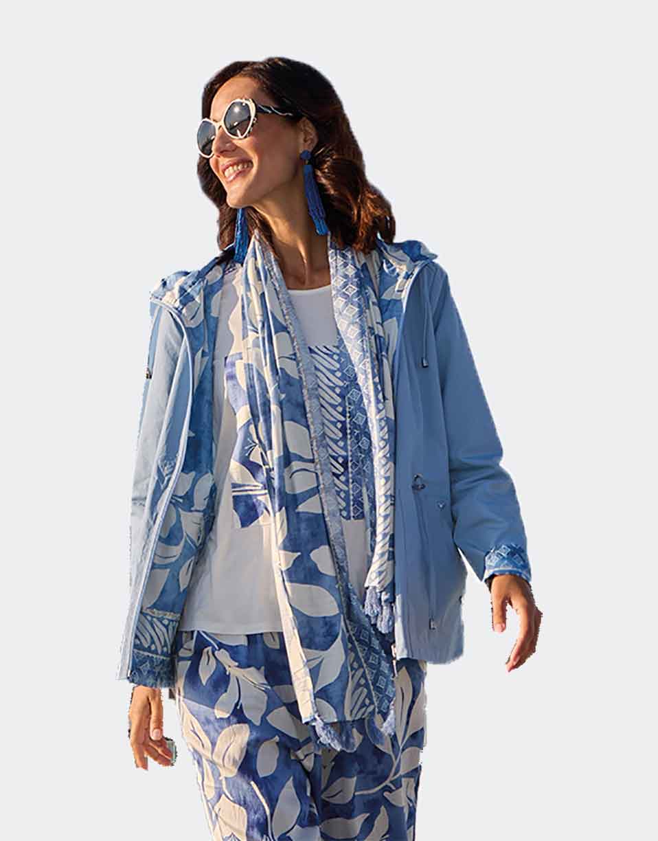 Parka mujer primavera reversible con capucha extraíble y estampado de plantas