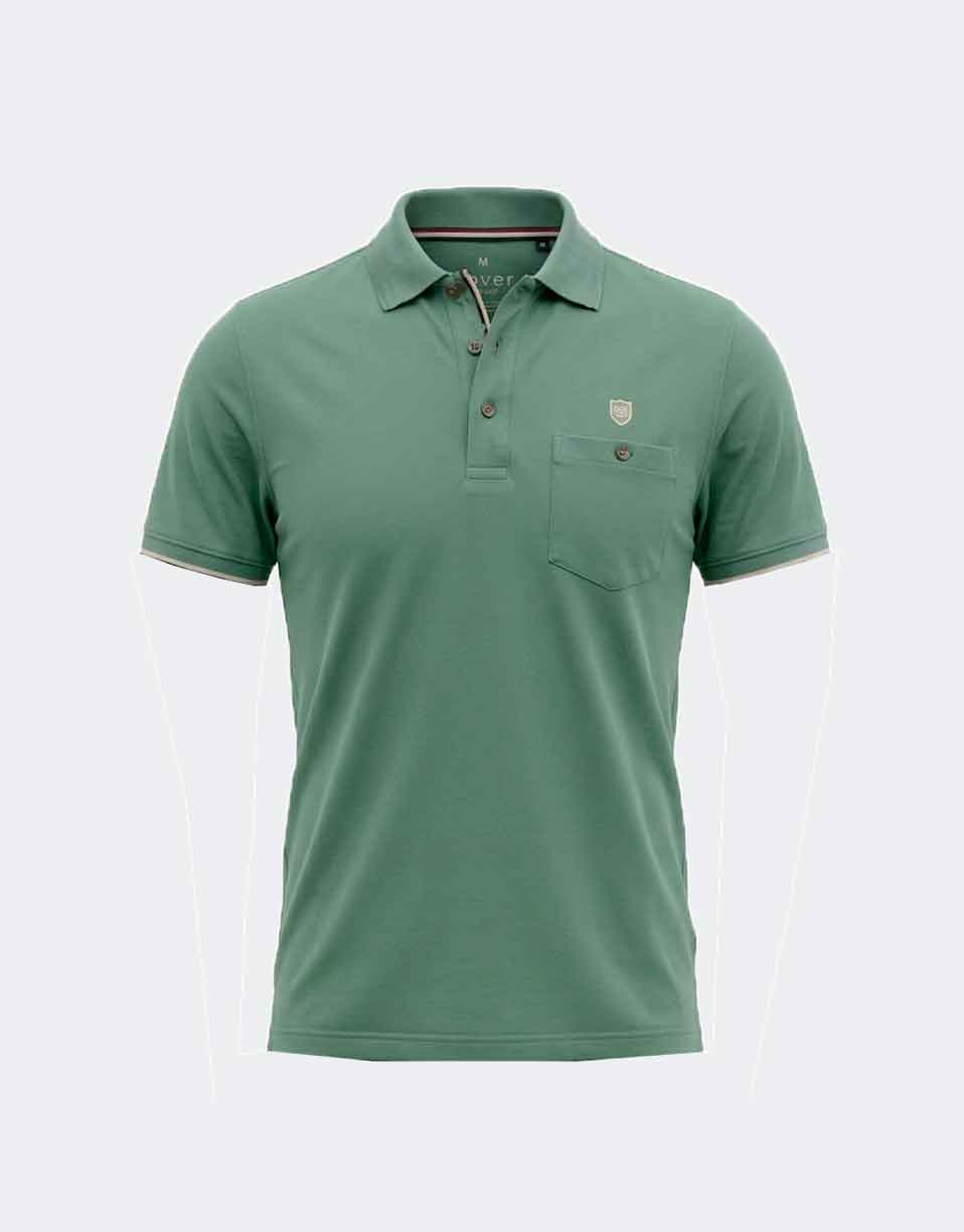 Polo hombre manga corta de punto piqué fino con bolsillo y detalle de raya en mangas